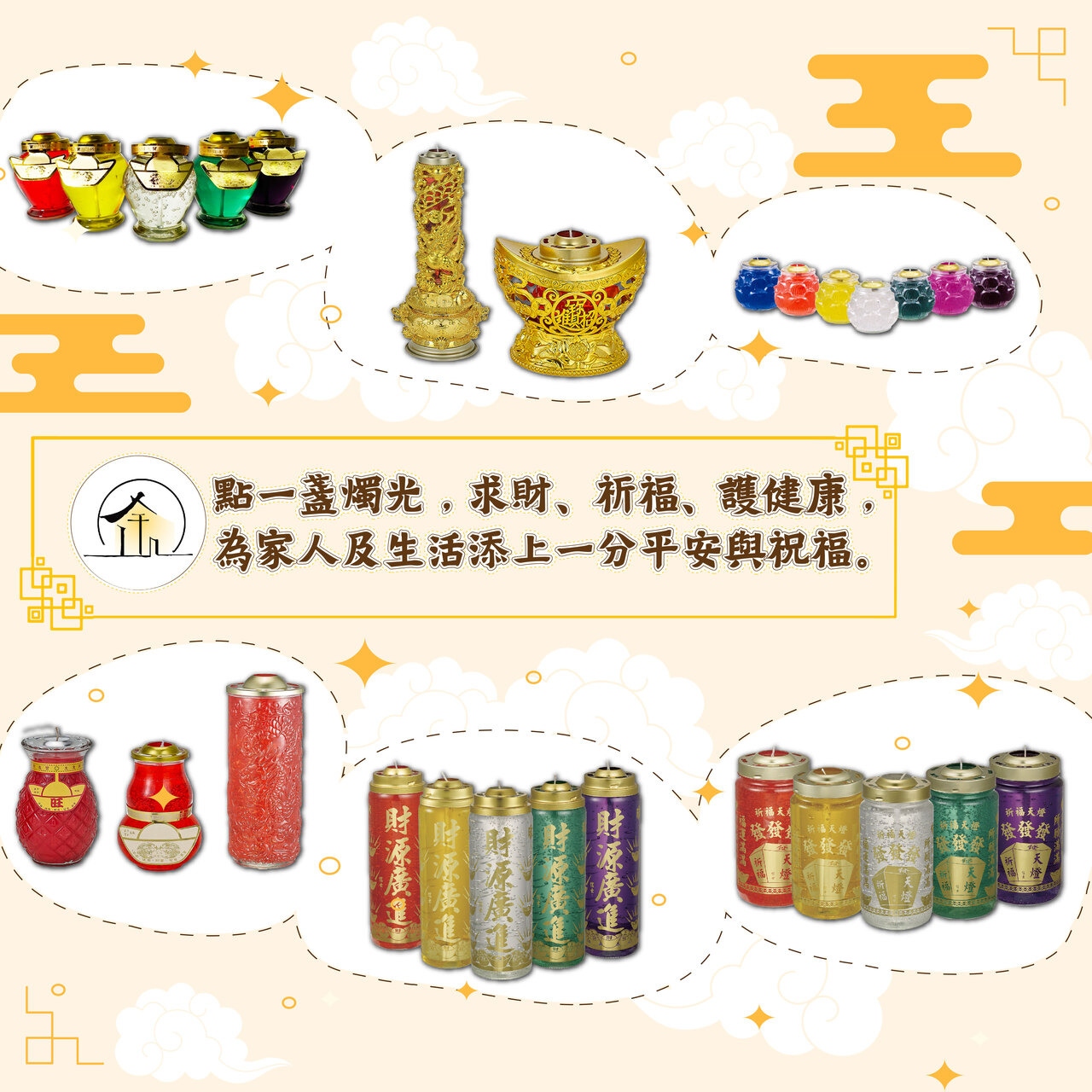 ● 求平安健康 → 葫蘆、蓮花蠟燭皆合適